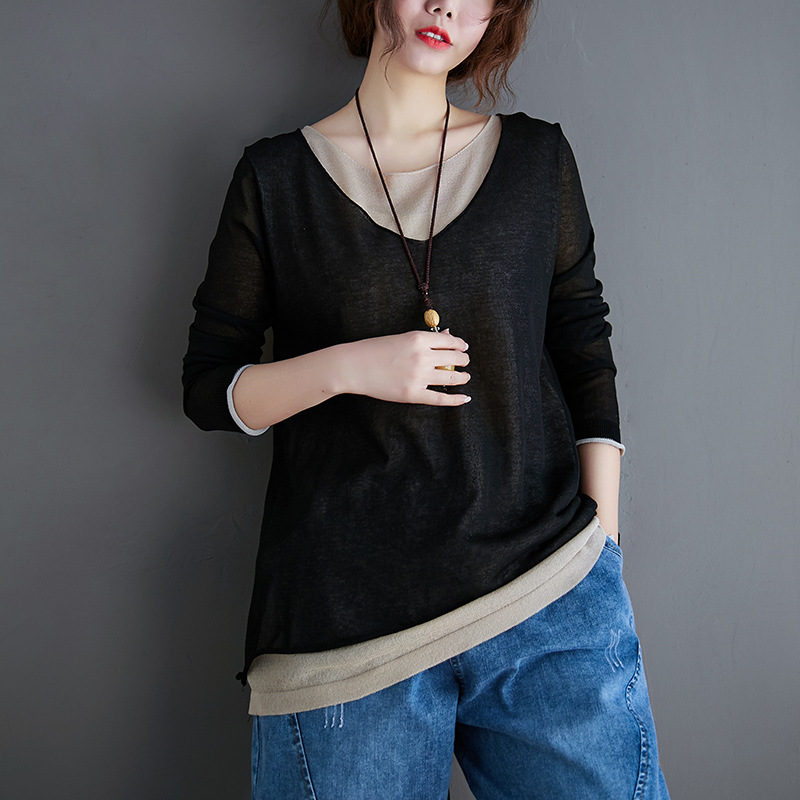 【フェイクレイヤードニット】春夏の新作 快適綿麻 ゆったり フリーサイズ