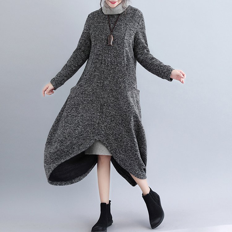 【非対称長袖Tシャツ】オリジナル 不規則 個性的なギャザーデザイン