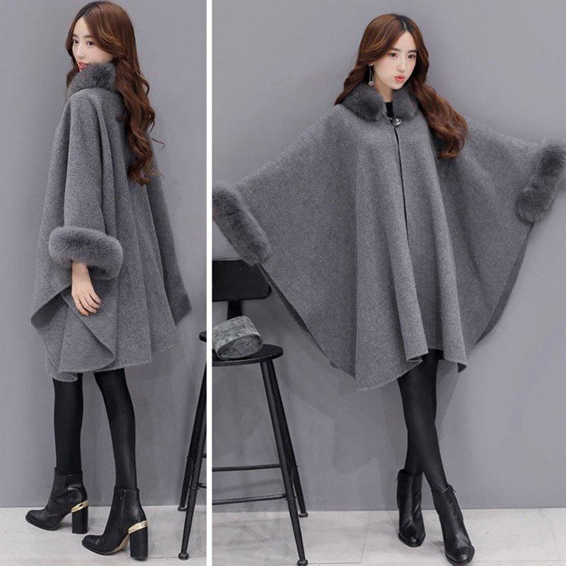 ファー付きポンチョコート