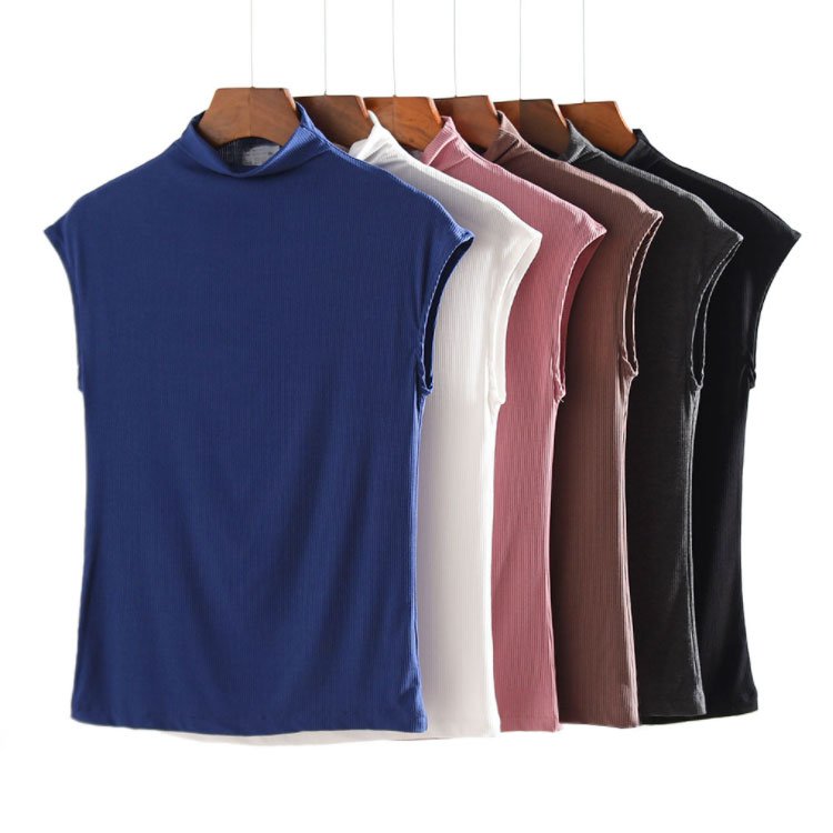 【ハイネックタンクトップ】ビスコース素材、シンプルで涼しい、ハイネック