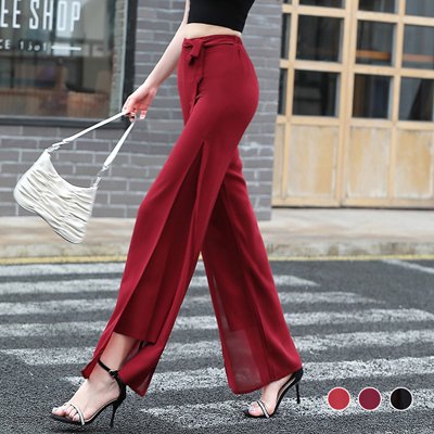 【ガウチョパンツ】落ち感 通気 ストレッチ 肌に優しい ハイウエスト サイドスリット入り