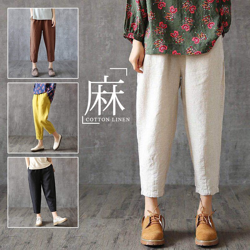 【クロップドパンツ】良質綿麻クロップドパンツ 吸汗通気 柔らかくフィット感の良い素材 リラックスした快適さを実現