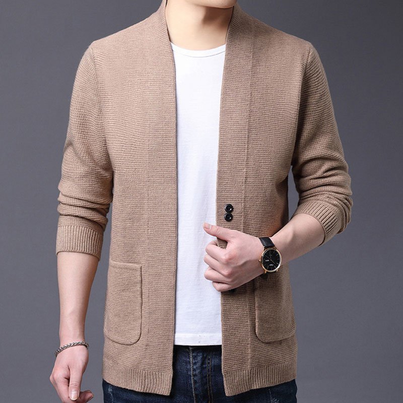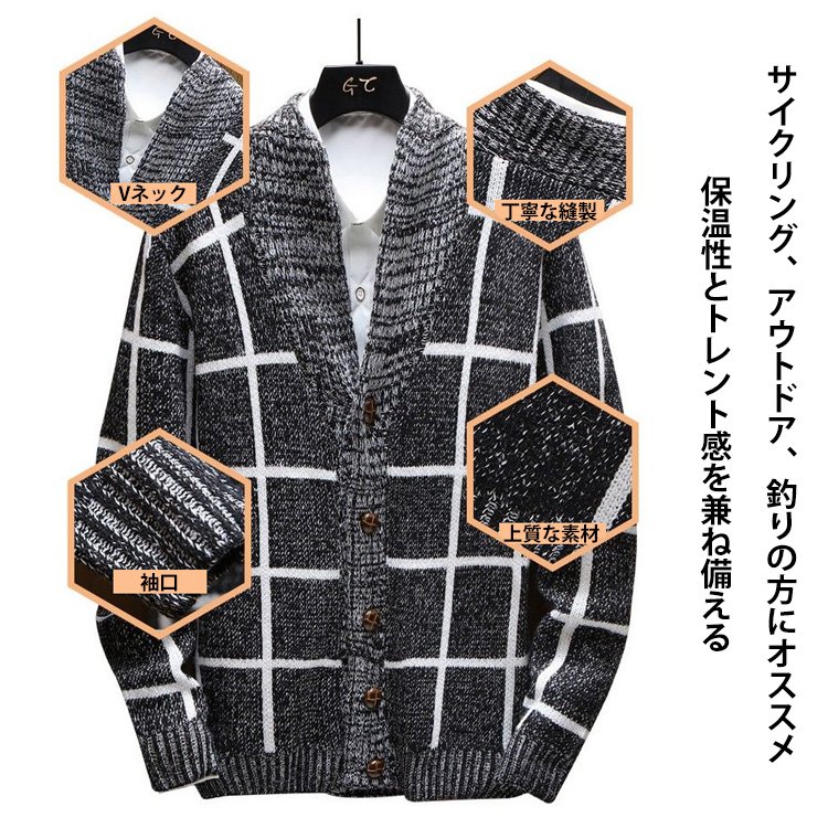 【メンズカーディガン】厚め加工で暖か、3色選べる、お洒落、合わせやすい